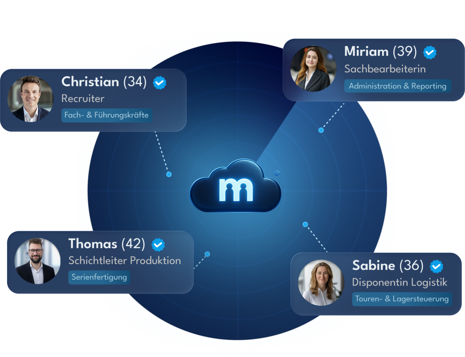 Über unsere mitarbeiter.com Cloud® identifizieren wir genau diese Kandidaten: Qualifiziert, regional verfügbar, tatsächlich wechselbereit. Wir sprechen sie direkt an, qualifizieren telefonisch vor und liefern nur Kandidaten, die wirklich passen.